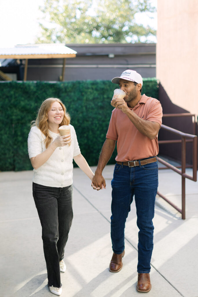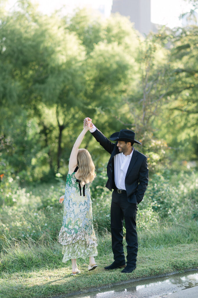 What I love most about Sally and Anthony’s session is how deeply personal it was to them. Their story lives in Houston — from meeting at a gala, to their first coffee date at Tenfold, to dancing under the city lights, to their proposal at Eleanor Tinsley Park.