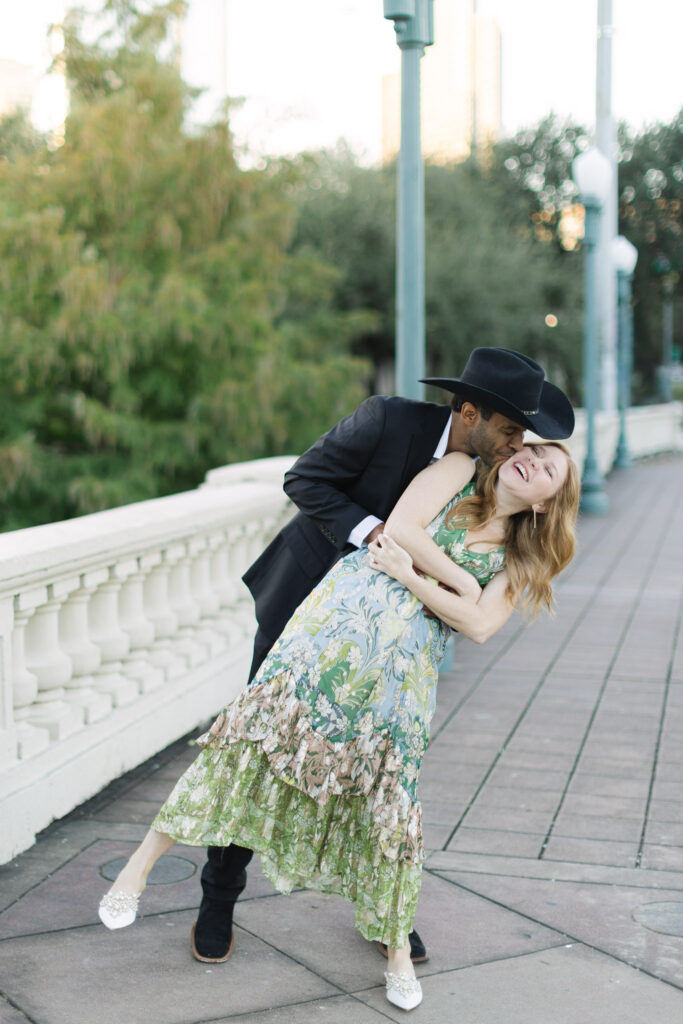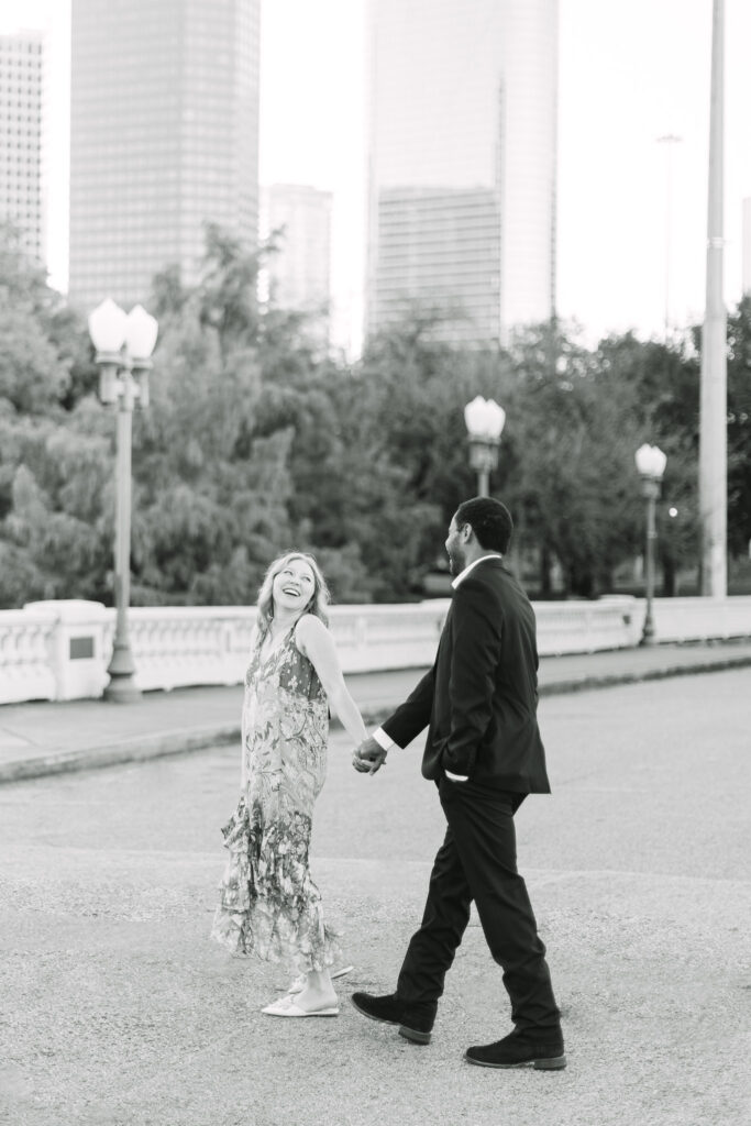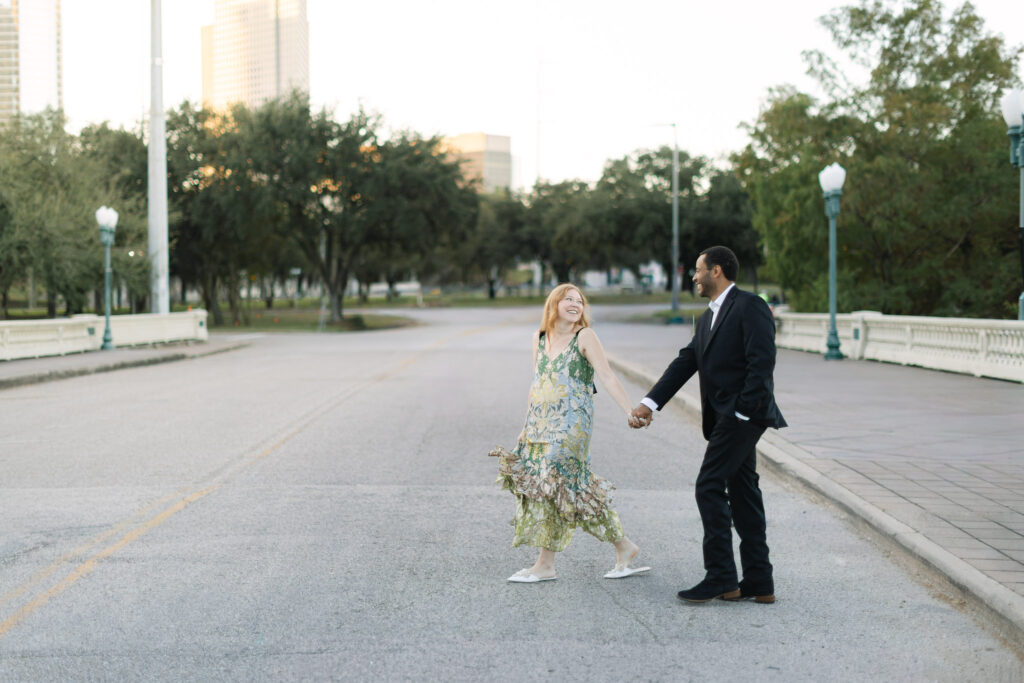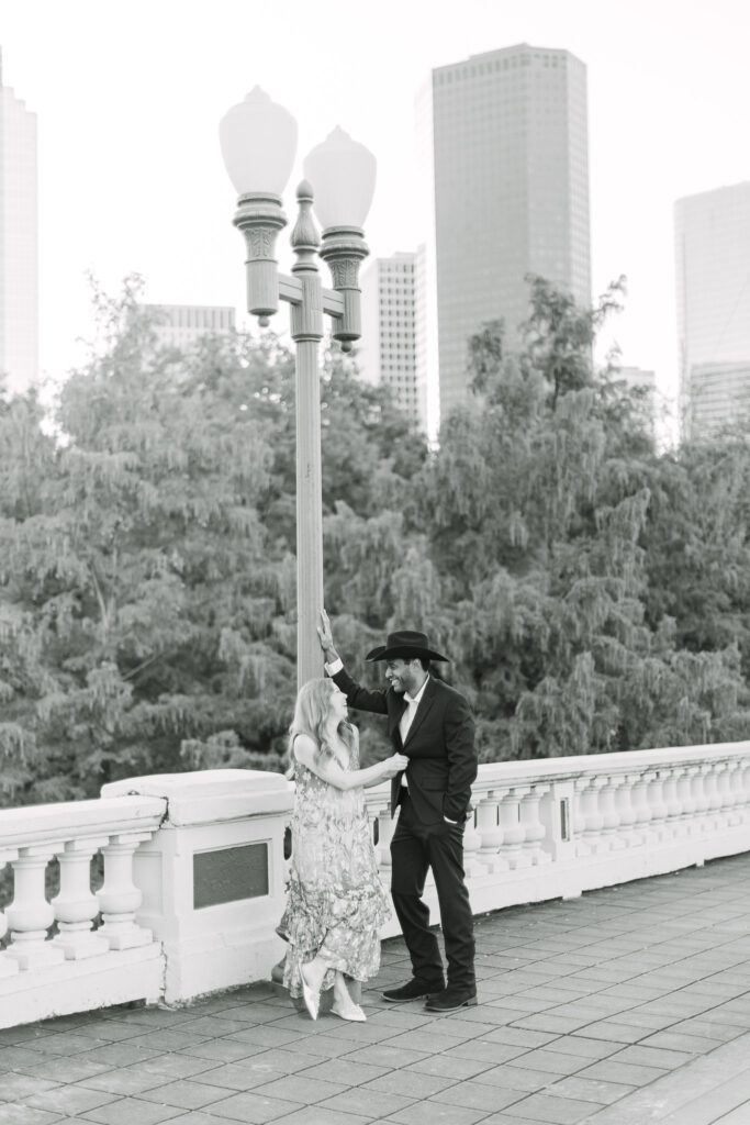 The bridge gave us those classic Houston engagement photos: city views, clean lines, and the perfect “we love our city” vibe.
